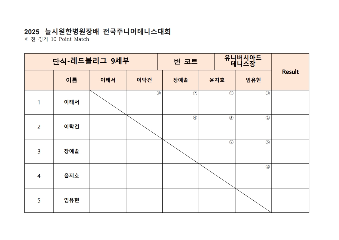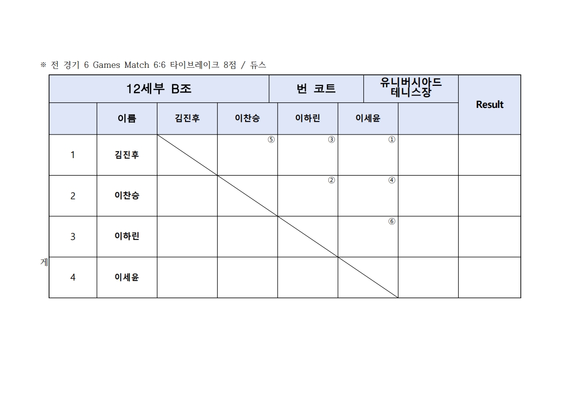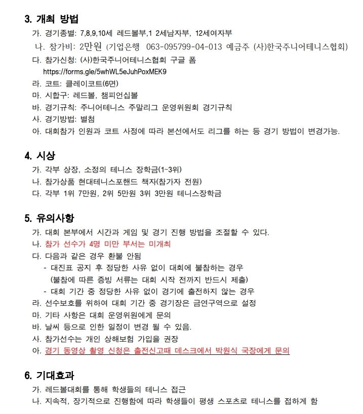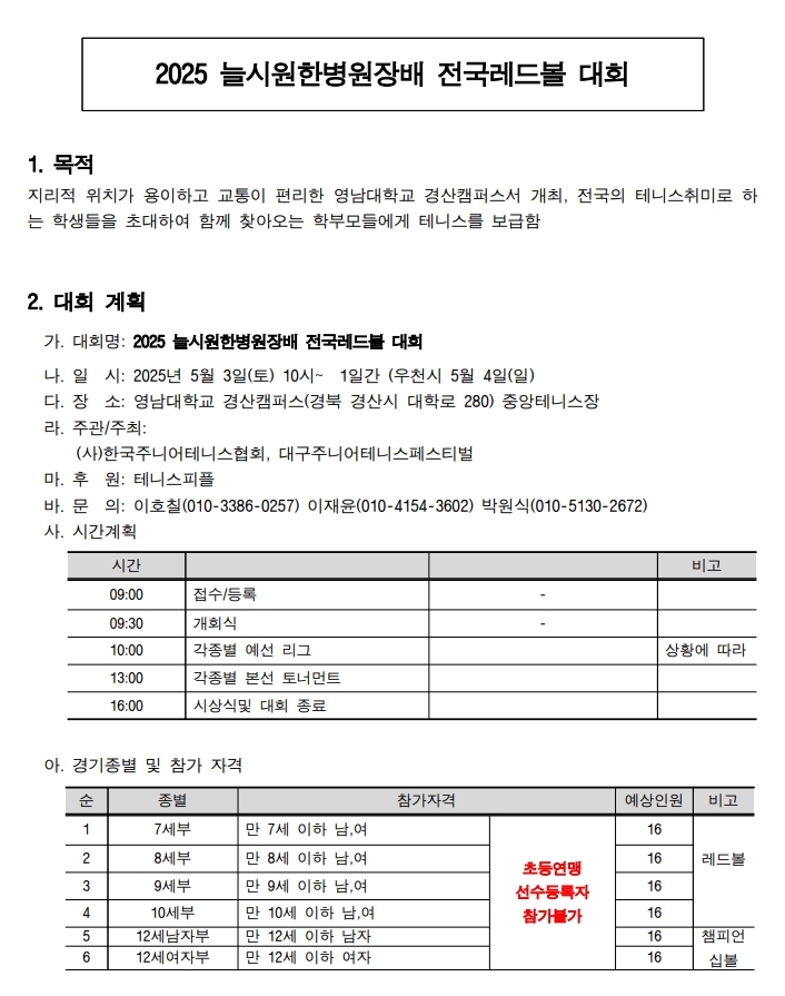 이번 대회는 12세부, 7세,9세,10세 레드볼 4개 부서로 진행됩니다.