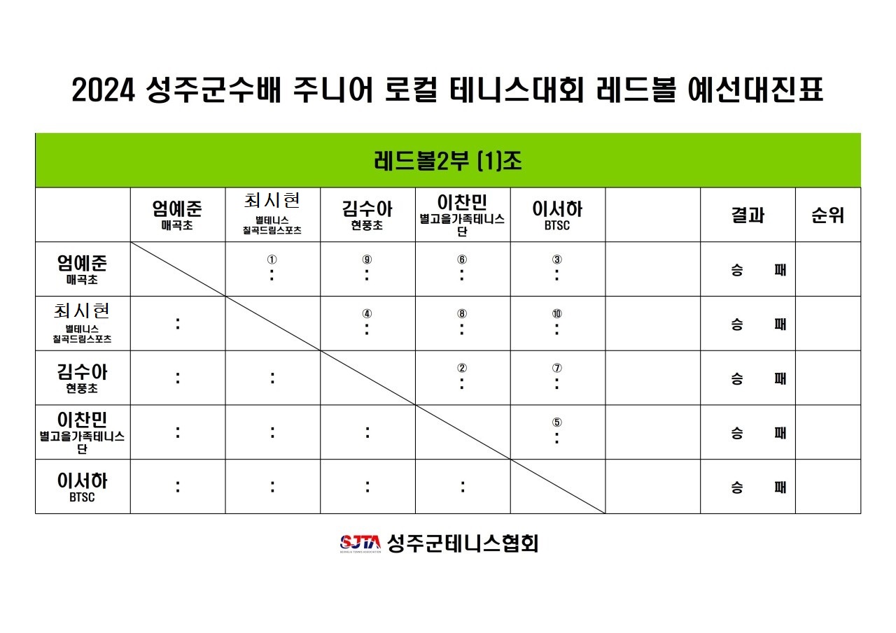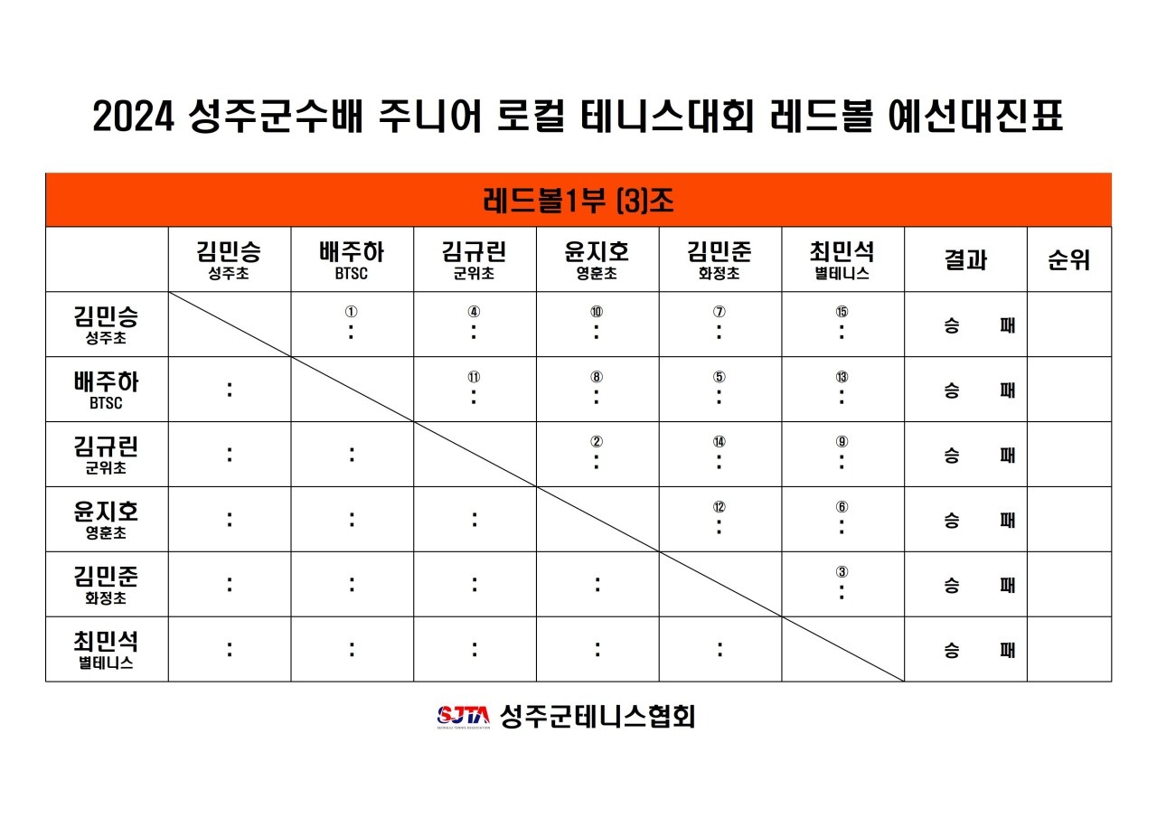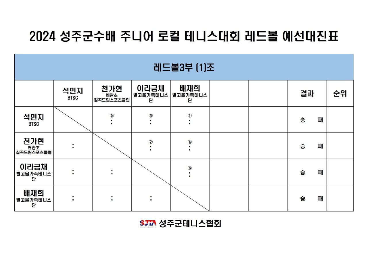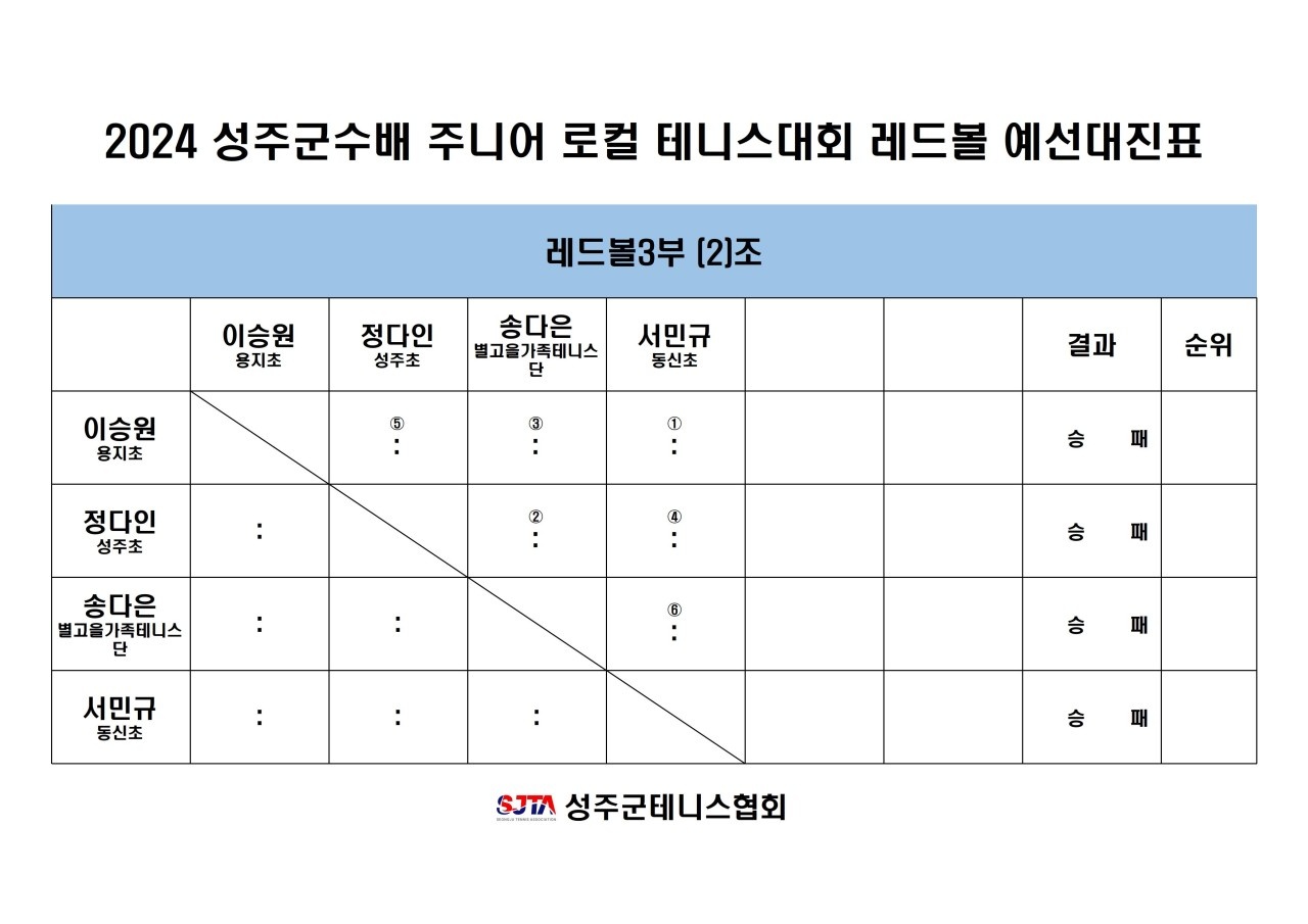 2024 성주군수배 테니스대회 경기 안내