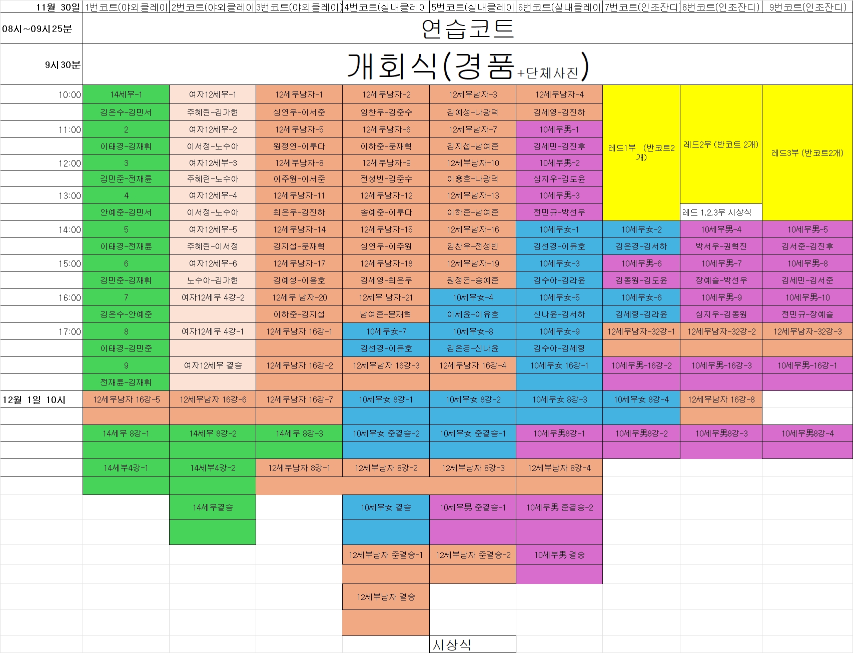 2. 경기시작 시간은 각 코트 09시 시작입니다.(09시 이전 연습코트 사용 )