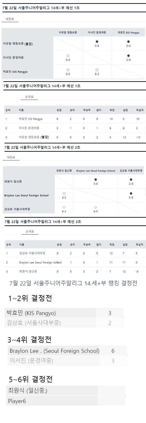 7월 22일 서울주니어주말리그 14세부 대회를 아래와 같이 합니다.